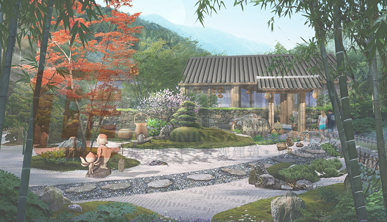 通過對項(xiàng)目地資源的調(diào)查和分析,綜合考慮園區(qū)周邊的資源和發(fā)展態(tài)勢,結(jié)合規(guī)劃區(qū)的發(fā)展定位和開發(fā)思路,根據(jù)文化主線,將整個(gè)項(xiàng)目劃分為四個(gè)功能分區(qū):貴地來客?印象入口服務(wù)區(qū)、凈心開悟?野奢民宿度假區(qū)、形神相和?云霧田園體驗(yàn)區(qū)、天人合一?山地養(yǎng)生休閑區(qū)。