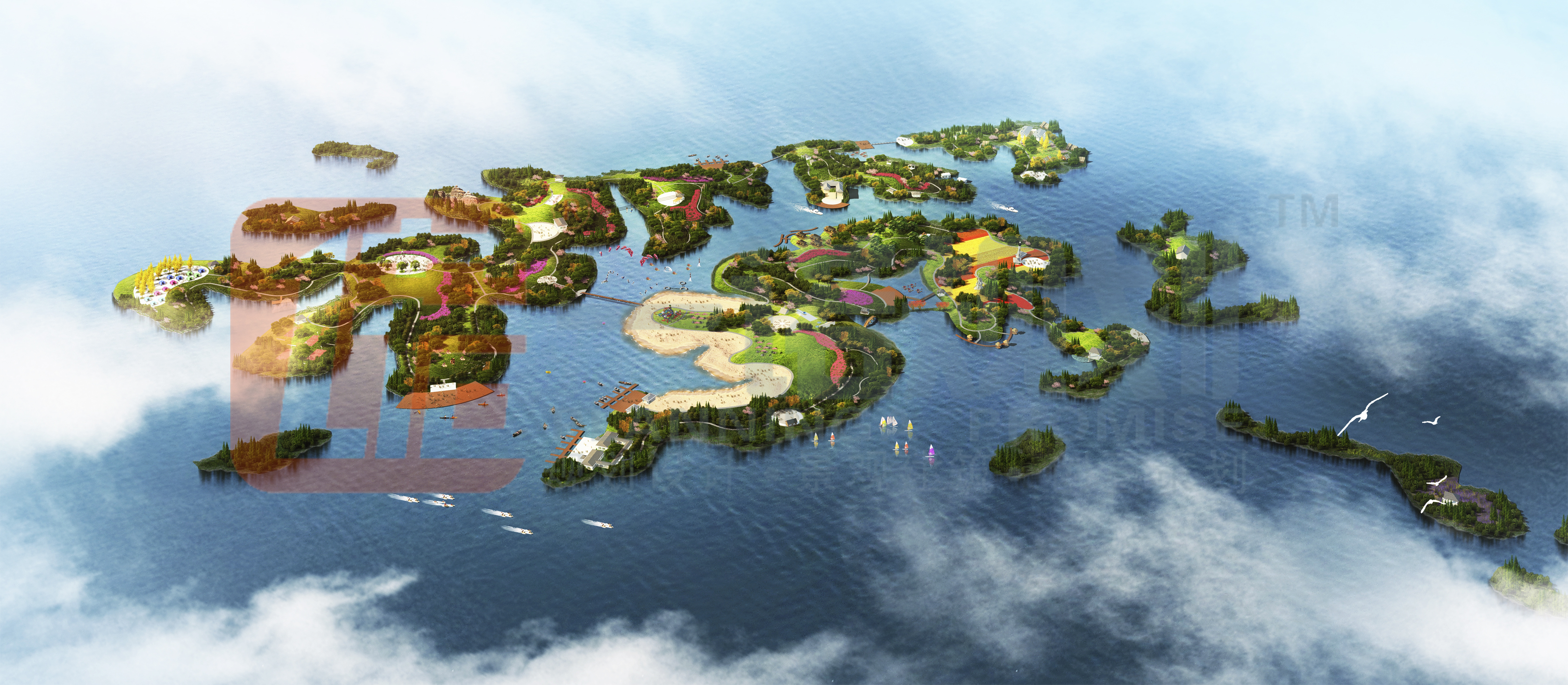 整個(gè)規(guī)劃圍繞“綜合接待服務(wù)、萬(wàn)國(guó)風(fēng)情體驗(yàn)、叢林穿梭探險(xiǎn)、休閑養(yǎng)生度假”的功能,以及考慮對(duì)外交通聯(lián)系方面的差異以及休閑服務(wù)項(xiàng)目體系構(gòu)建,以及景觀地形等多方面因素,結(jié)合規(guī)劃項(xiàng)目的發(fā)展定位和開(kāi)發(fā)思路,將整個(gè)景區(qū)劃分為3個(gè)主題島嶼:海馬萬(wàn)國(guó)風(fēng)情島;瑞士養(yǎng)生島;亞馬遜叢林探險(xiǎn)島。