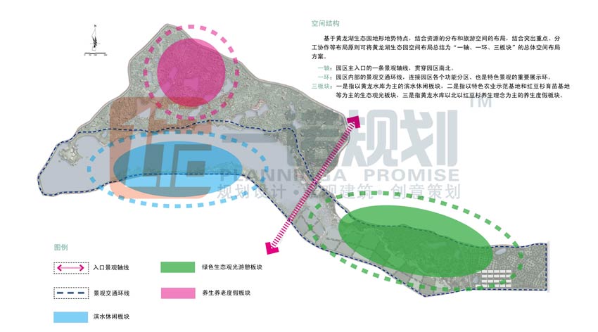 三板塊:一是指以黃龍水庫為主的濱水休閑板塊,二是指以特色農(nóng)業(yè)示范基地和紅豆杉育苗基地等為主的生態(tài)觀光板塊,三是指黃龍水庫以北以紅豆杉養(yǎng)生理念為主的養(yǎng)生度假板塊。