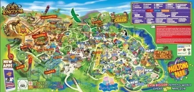 ▲世界上第一個(gè)小豬佩奇樂(lè)園是隸屬在英國(guó)保爾頓斯樂(lè)園的一個(gè)主題區(qū)(即上圖黃線(xiàn)內(nèi)的區(qū)域)。2011年開(kāi)放,一年內(nèi)就讓整個(gè)樂(lè)園游客數(shù)倍翻,達(dá)到百萬(wàn)人次。