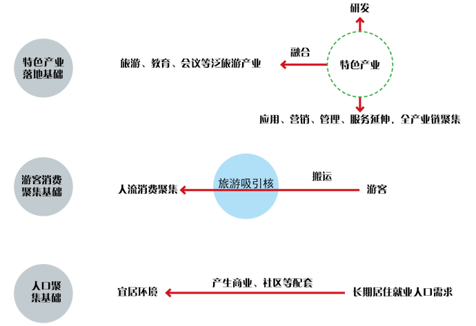 具有明確產(chǎn)業(yè)定位、文化內(nèi)涵、旅游特征和一定社區(qū)功能的綜合開發(fā)體系。是單一的旅游景區(qū),或產(chǎn)業(yè)園區(qū),也不完全是建制鎮(zhèn),而是旅游景區(qū)、產(chǎn)業(yè)聚集區(qū)、新型城鎮(zhèn)化發(fā)展區(qū)三區(qū)功能合一、產(chǎn)城一體化的新型城鎮(zhèn)化模式。